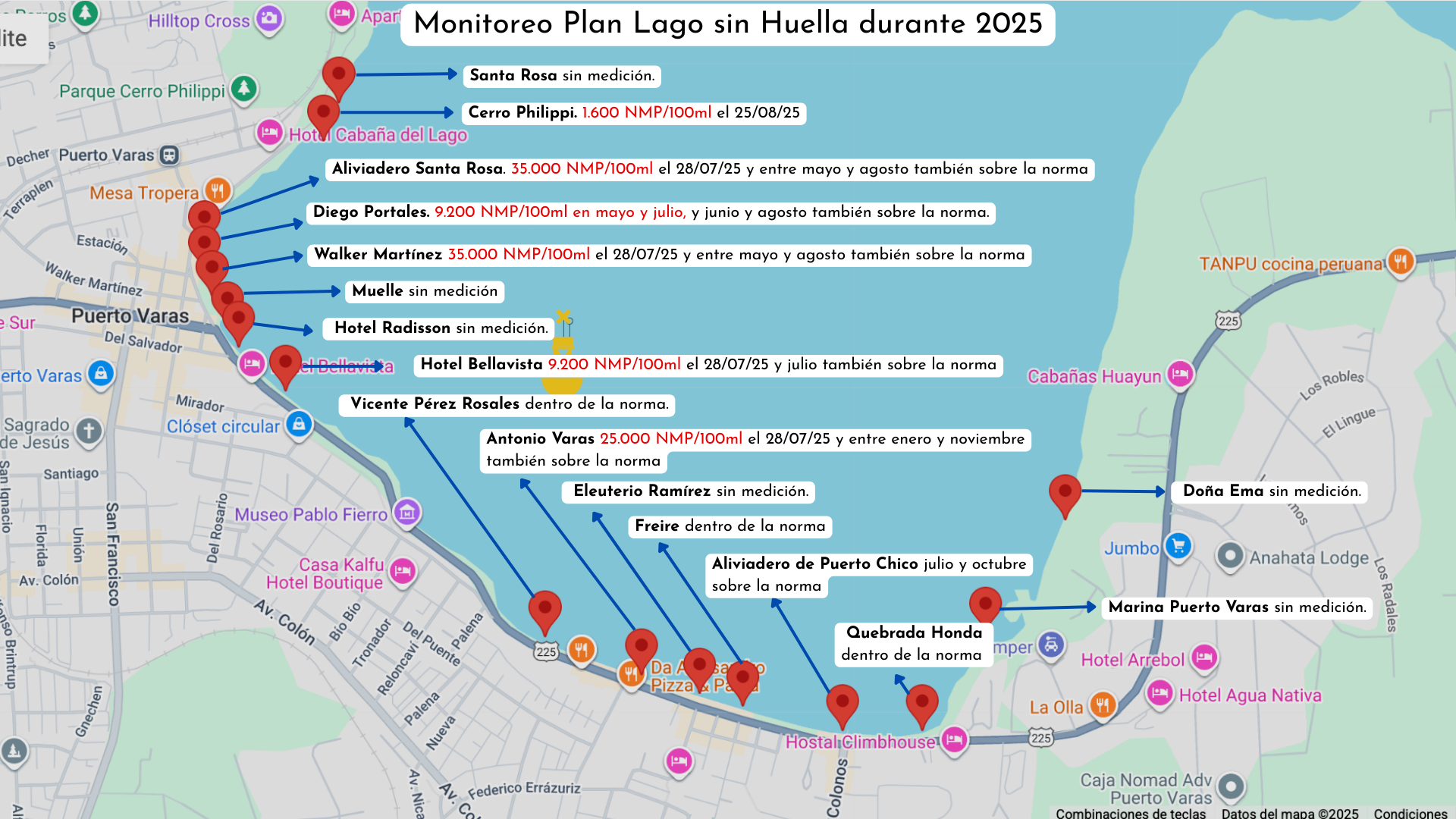 - A tres años del Plan Lago sin Huella: Lago Llanquihue sigue altamente contaminado con coliformes fecales hasta en 35 veces sobre la norma ambiental