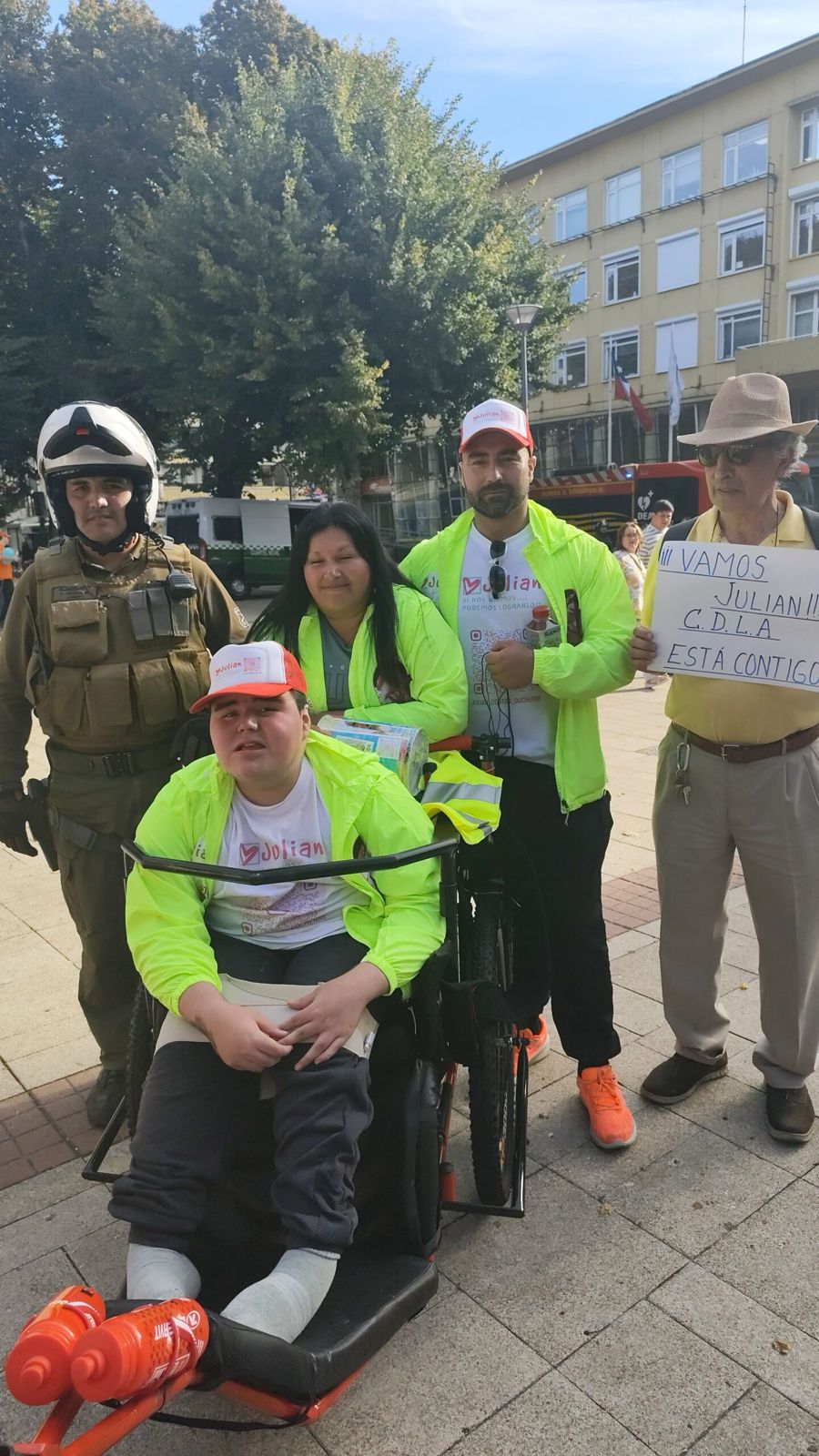 En Chile la distrofia muscular de Duchenne no cuenta con cobertura para este tipo de terapias de alto costo. Ante esa situación, la familia inició una campaña pública para reunir los recursos necesarios. En marzo de 2025 emprendieron la cruzada “Julián rueda por Chile”, un recorrido de más de mil kilómetros desde el sur hasta Santiago para visibilizar el caso y solicitar apoyo.